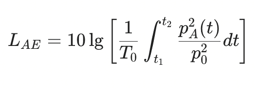 Exposure sound level ($L_{AE}$) is the A-weighted sound level of a single acoustic event, determined by the formula: