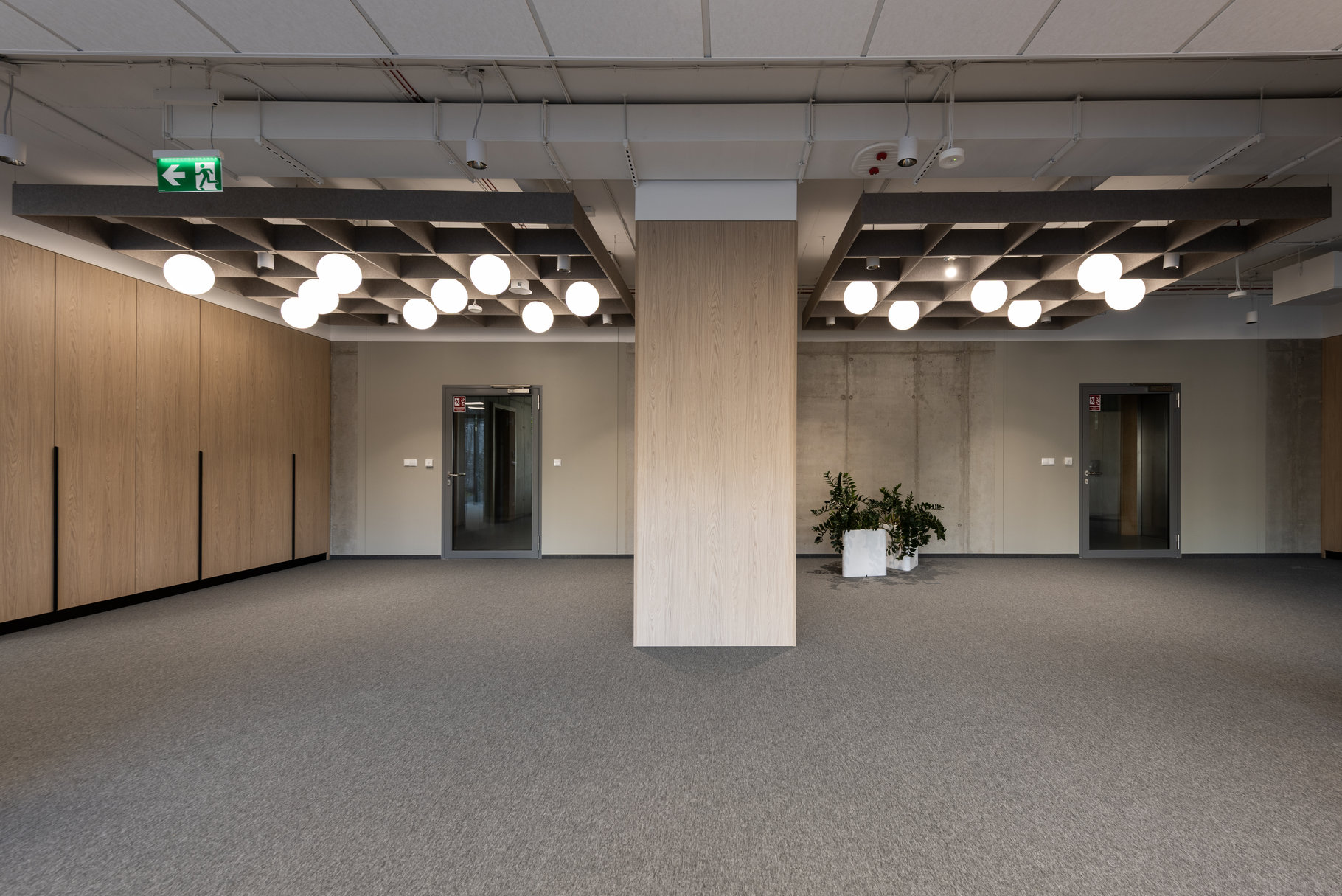 Designing office space for a tenant that does not yet exist requires creating universal, flexible interiors prepared for various work scenarios. In an environment where open spaces, receptions, or conference rooms naturally generate a high level of noise, it becomes crucial to ensure appropriate sound absorption and stabilization right from the arrangement stage.