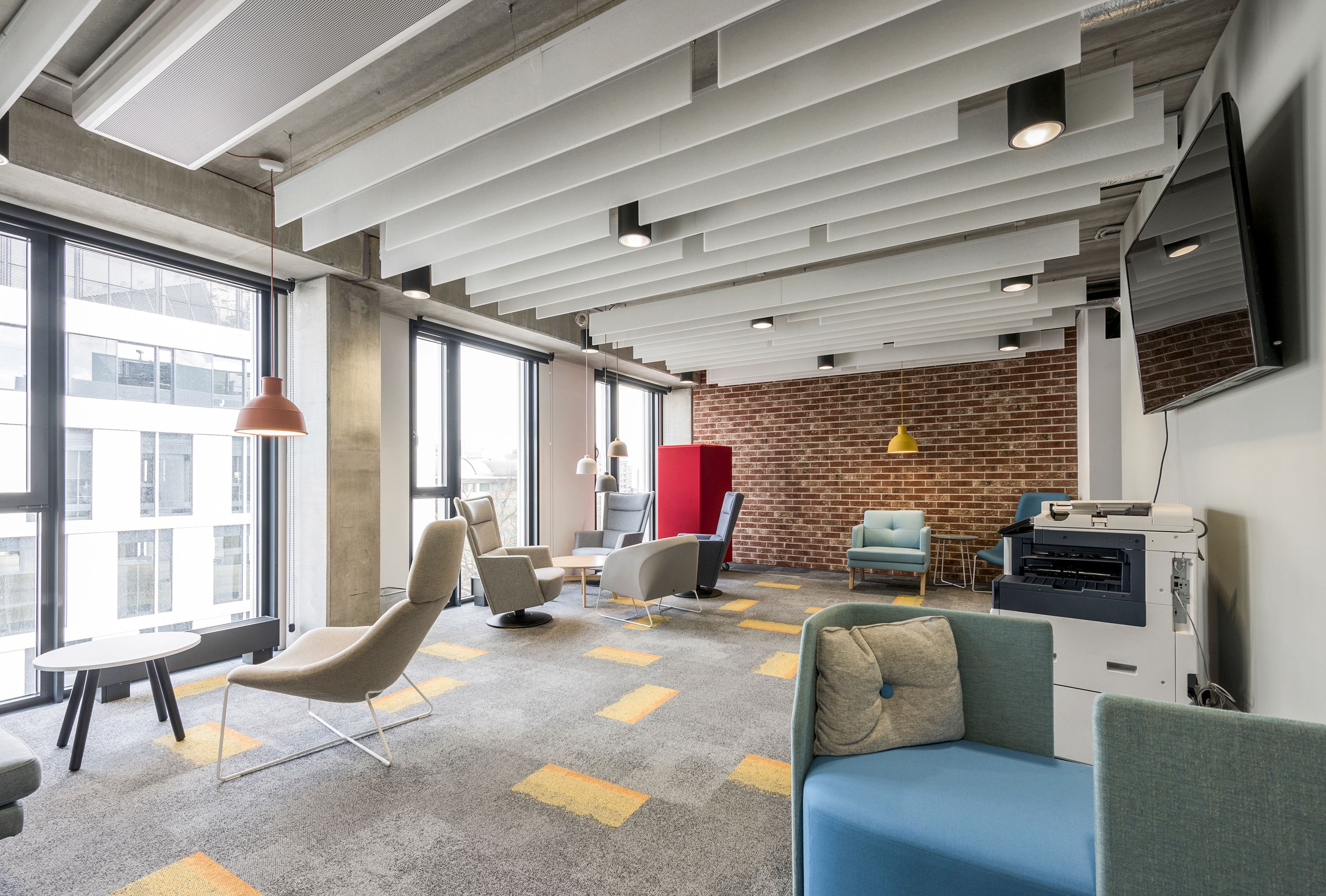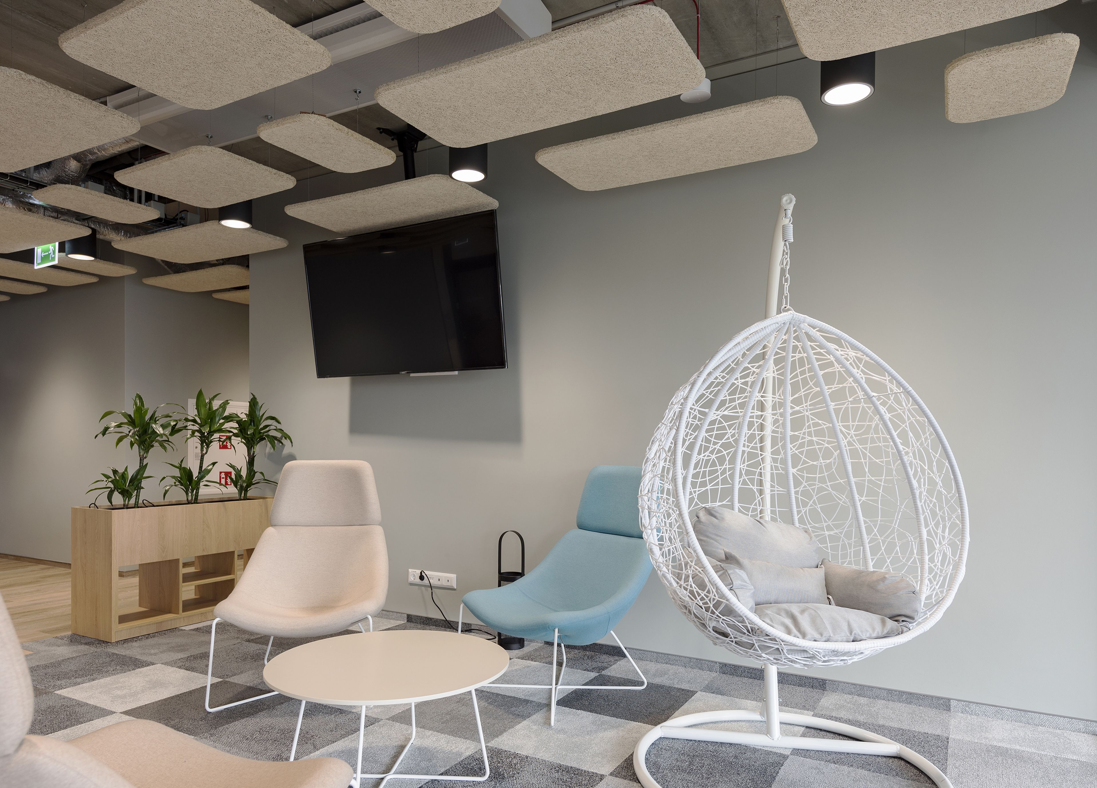 Nowa, inspirująca przestrzeń, skoncentrowana na stworzeniu środowiska, które sprzyja regeneracji i swobodnej, kreatywnej pracy. Całość wprowadza przyjazną, nieformalną atmosferę, w której komfort akustyczny i wizualny wspierają codzienne funkcjonowanie użytkowników.