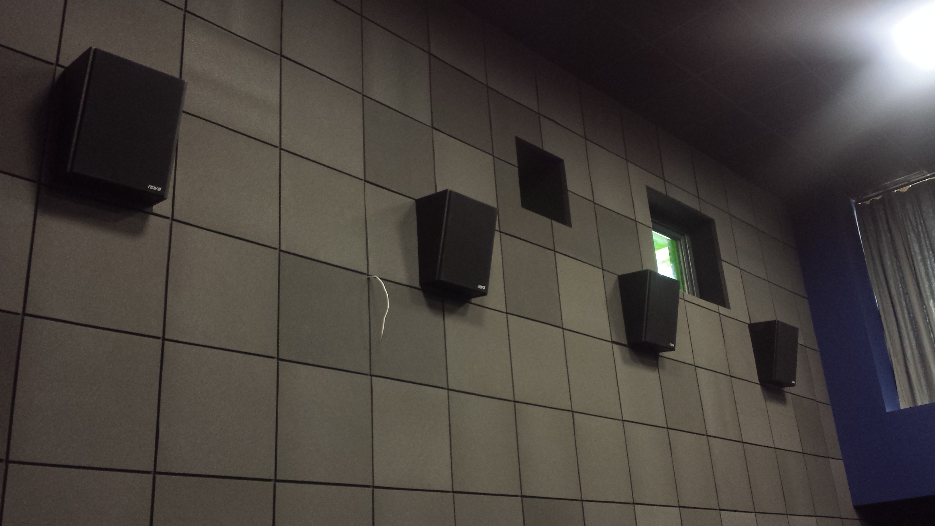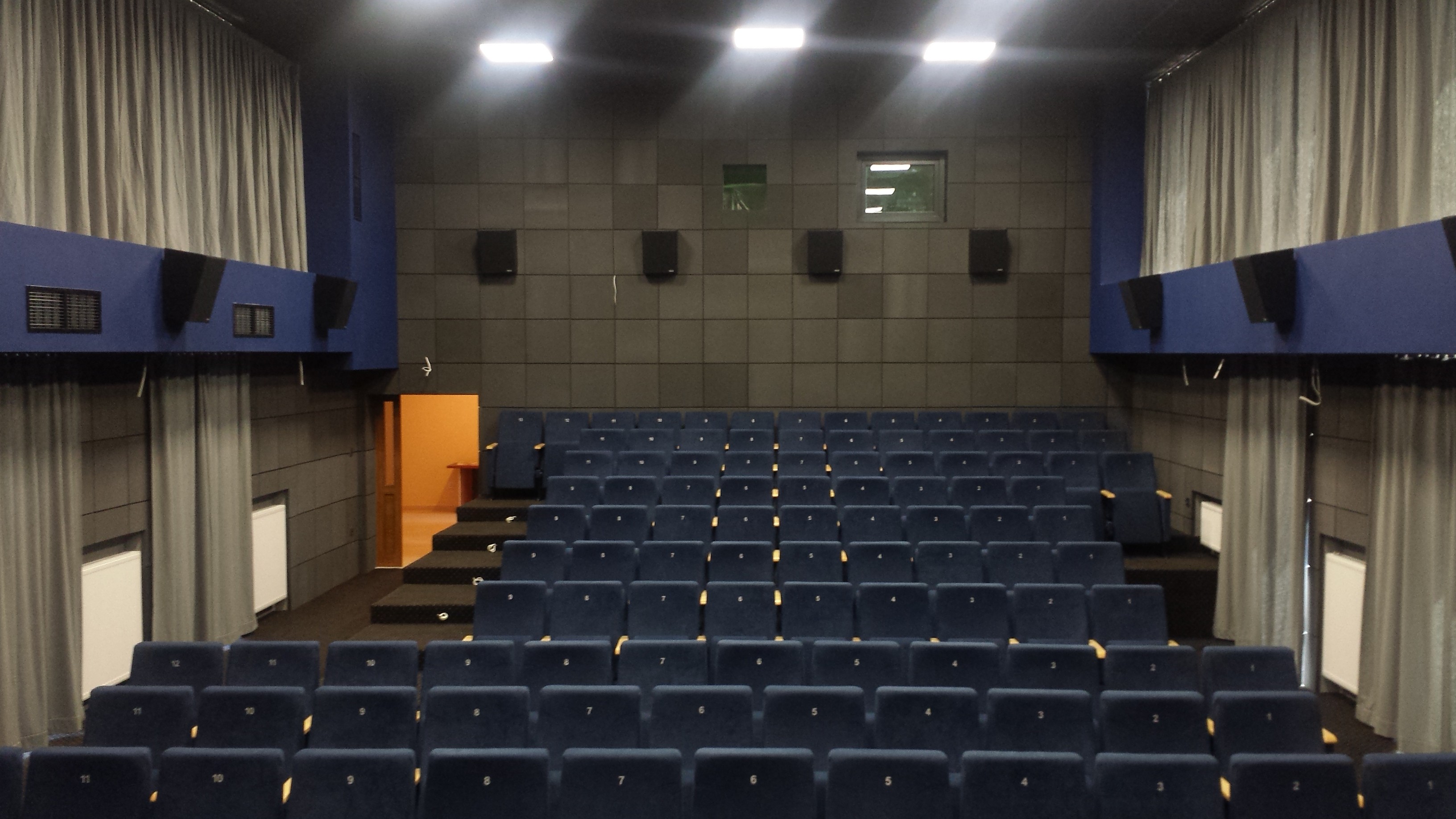 Na ścianach zostały zamontowane szafe panele z serii Fiber Color pokryte welurem. Wejścia ewakuacyjne, górną część sali oraz scenę, przesłoniliśmy kotarami akustycznymi. Na podłodze, aby podnieść komfort odbioru seansów zastosowaliśmy wykładziny oraz maty akustyczne V-MAT 350. Skutecznie ograniczają one przenoszenie hałasu uderzeniowego oraz drgań.
