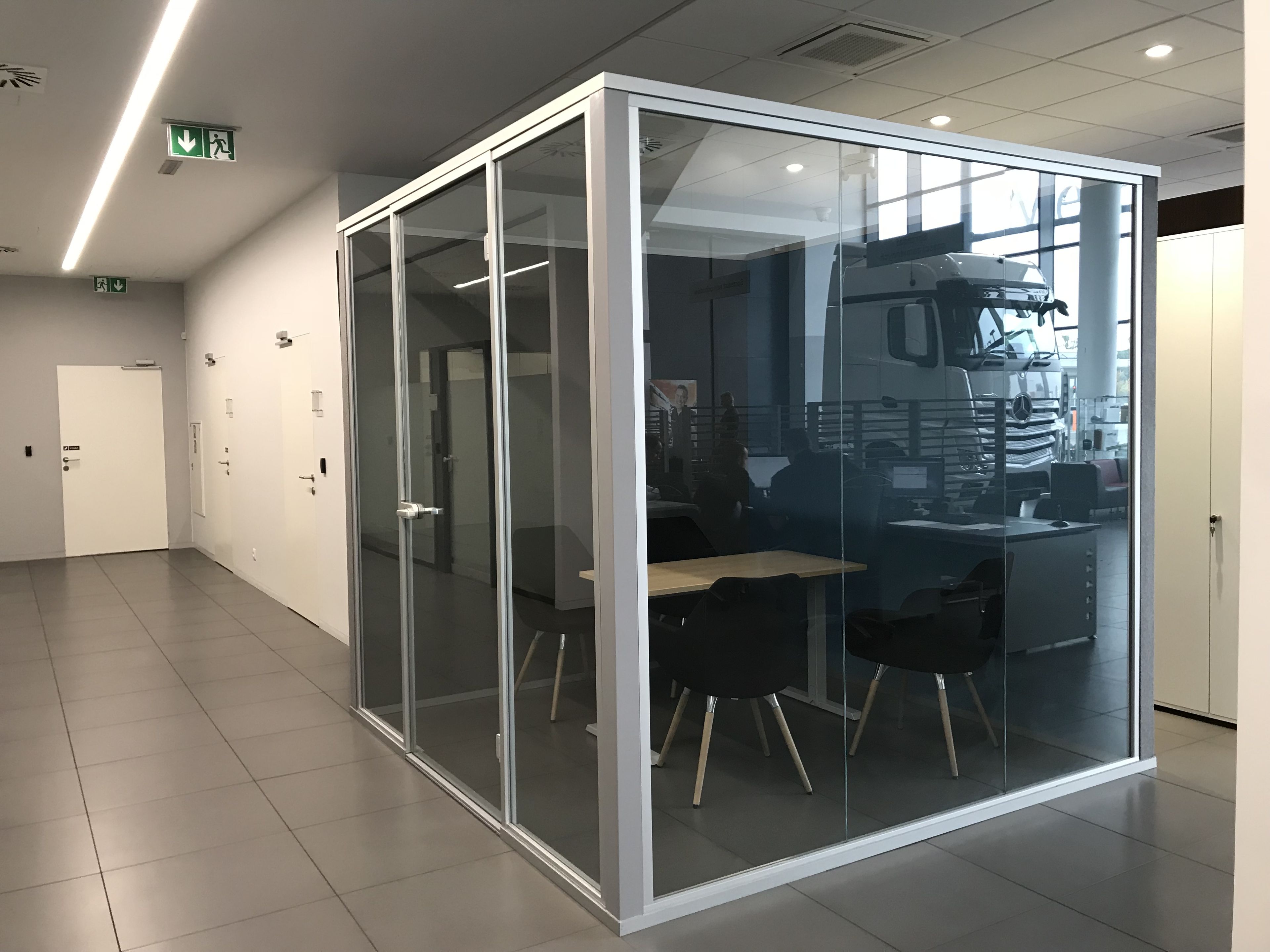 Przestań przeznaczona do prowadzenia rozmów z klientami oraz spotkań wymagających prywatności powstała dla Mercedes-Benz w Warszawie. Akustycznie wydzielona strefa, zaprojektowana jako wolnostojąca konstrukcja, pozwala to na jej swobodne przemieszczenie wraz ze zmianą aranżacji biura.