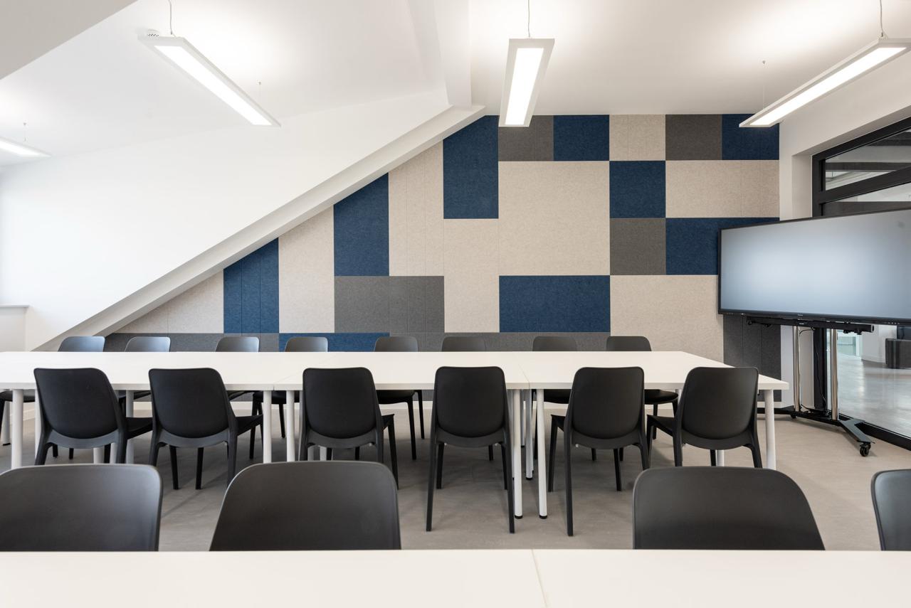 EcoWall Basic i EcoWall Tiles to rozwiązania, które budują spokojne, uporządkowane tło w zależności od funkcji pomieszczenia. Odpowiednio zaprojektowane środowisko dźwiękowe umożliwia odbiorcom skupienie na prezentowanych treściach. Eliminacja chaosu akustycznego poprawia czytelność słowa zarówno mówionego, jak i odtwarzanego.
