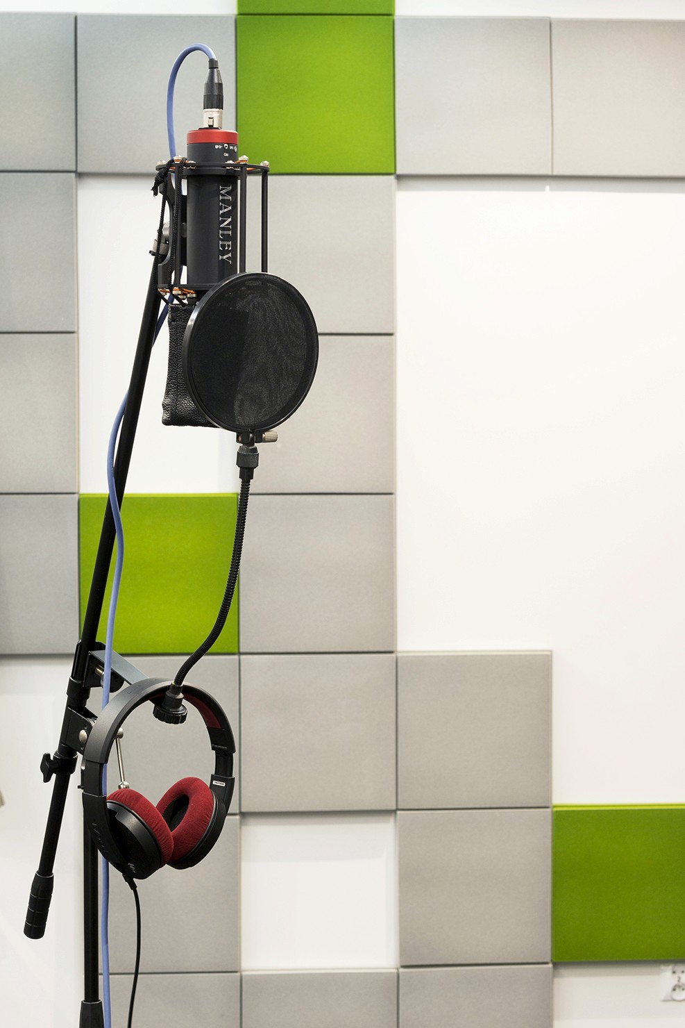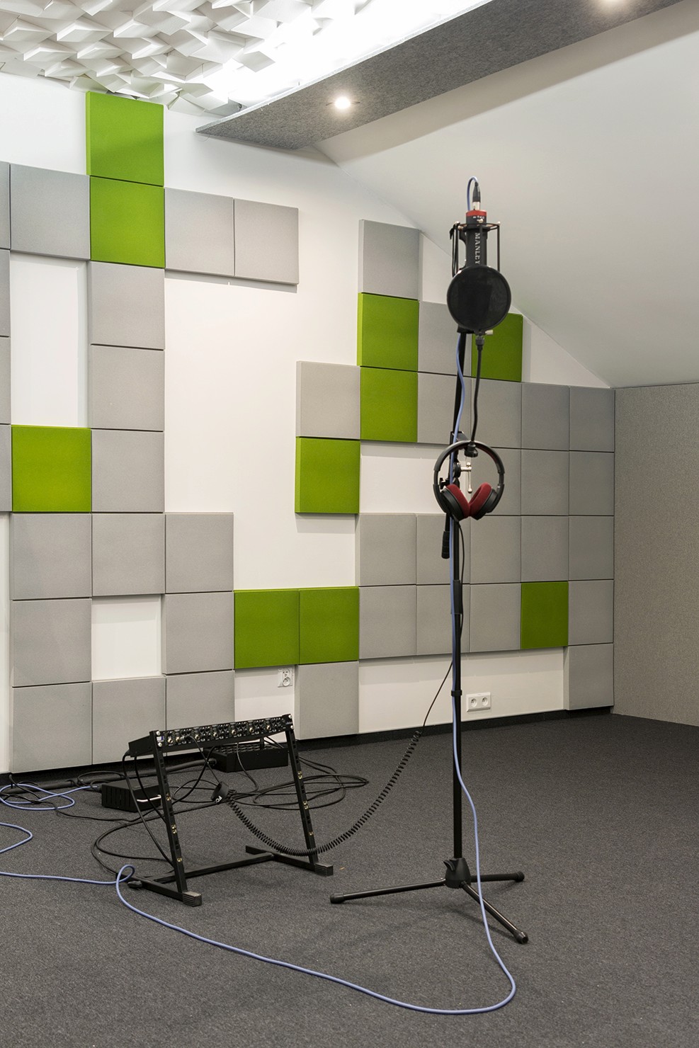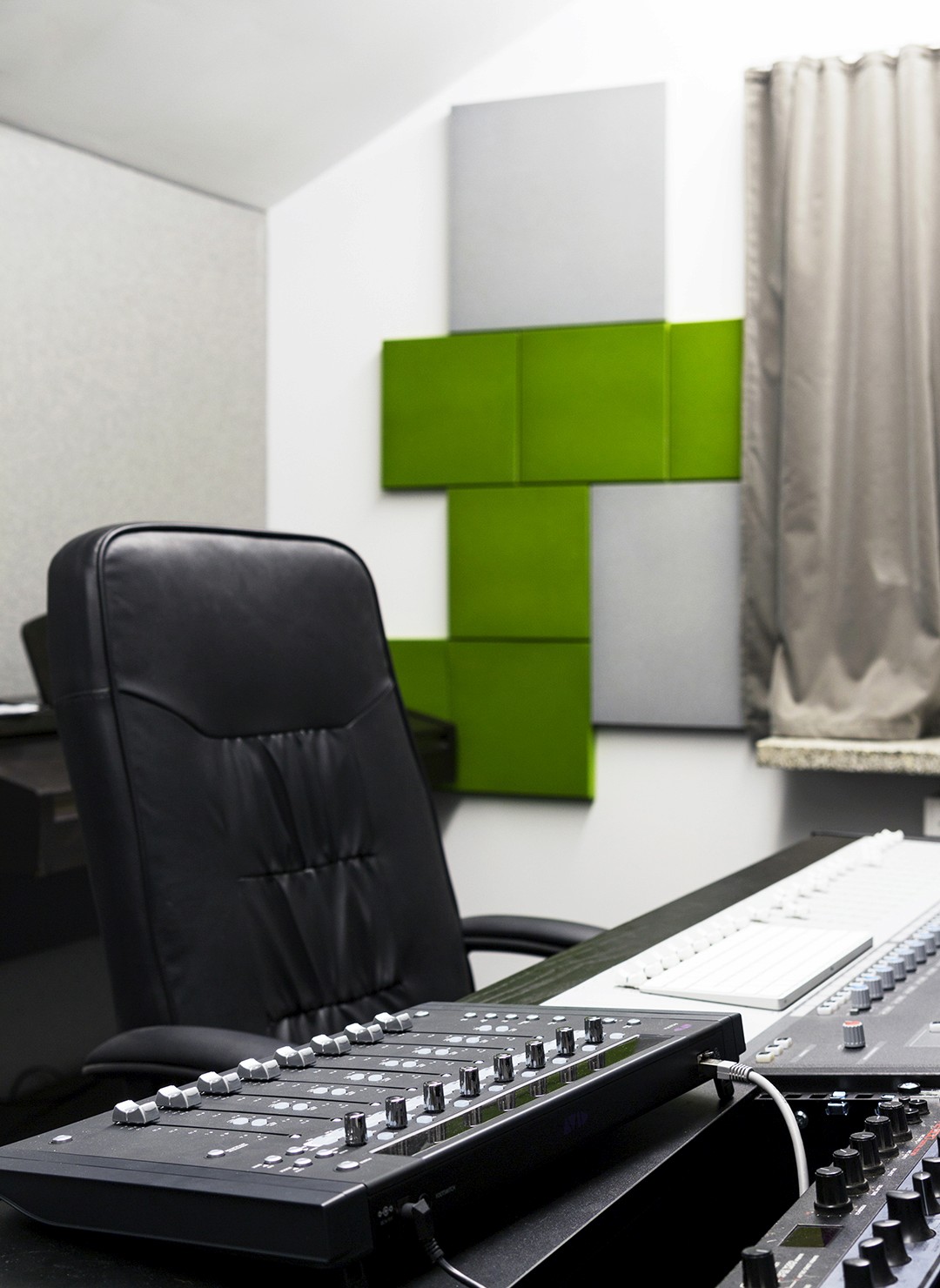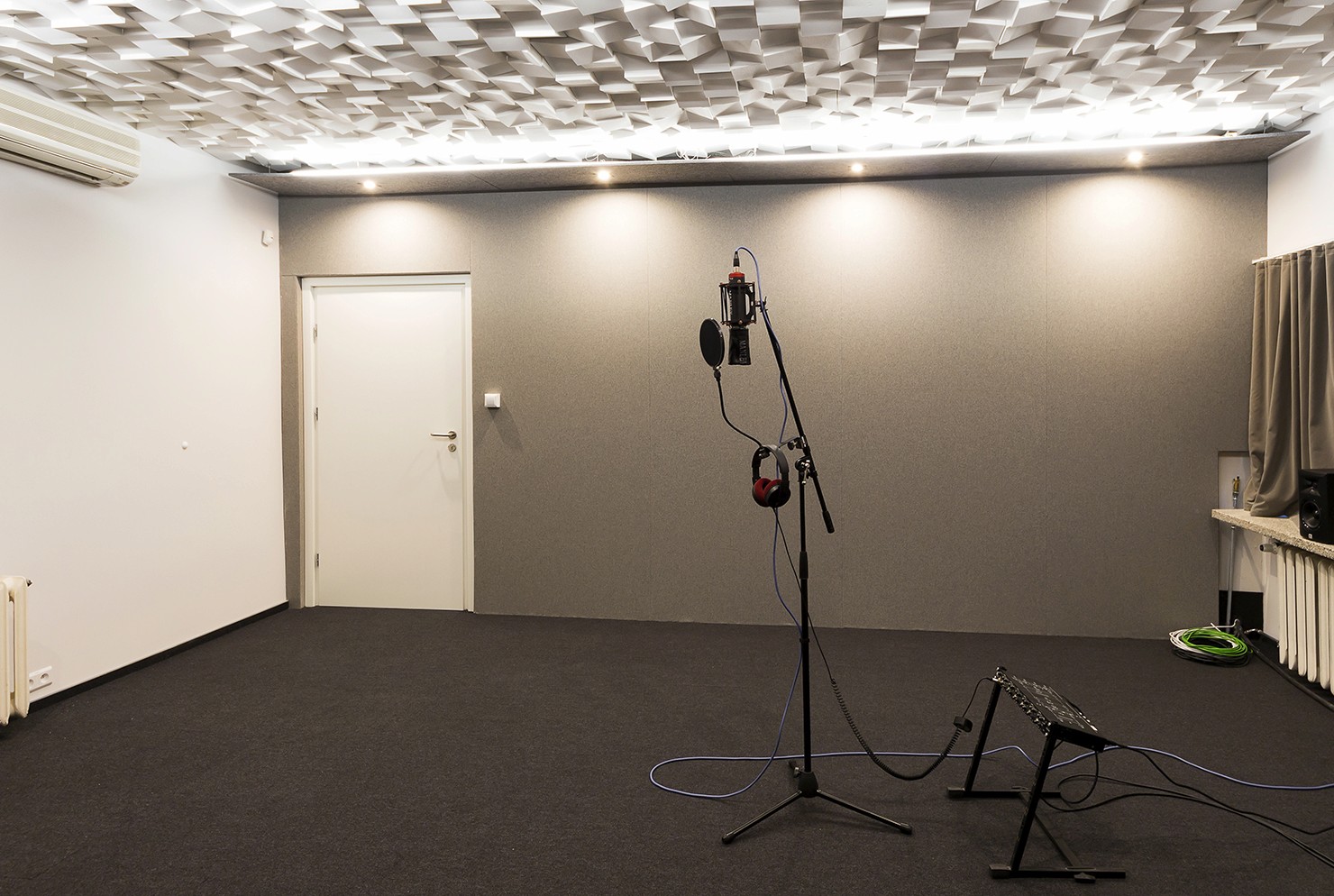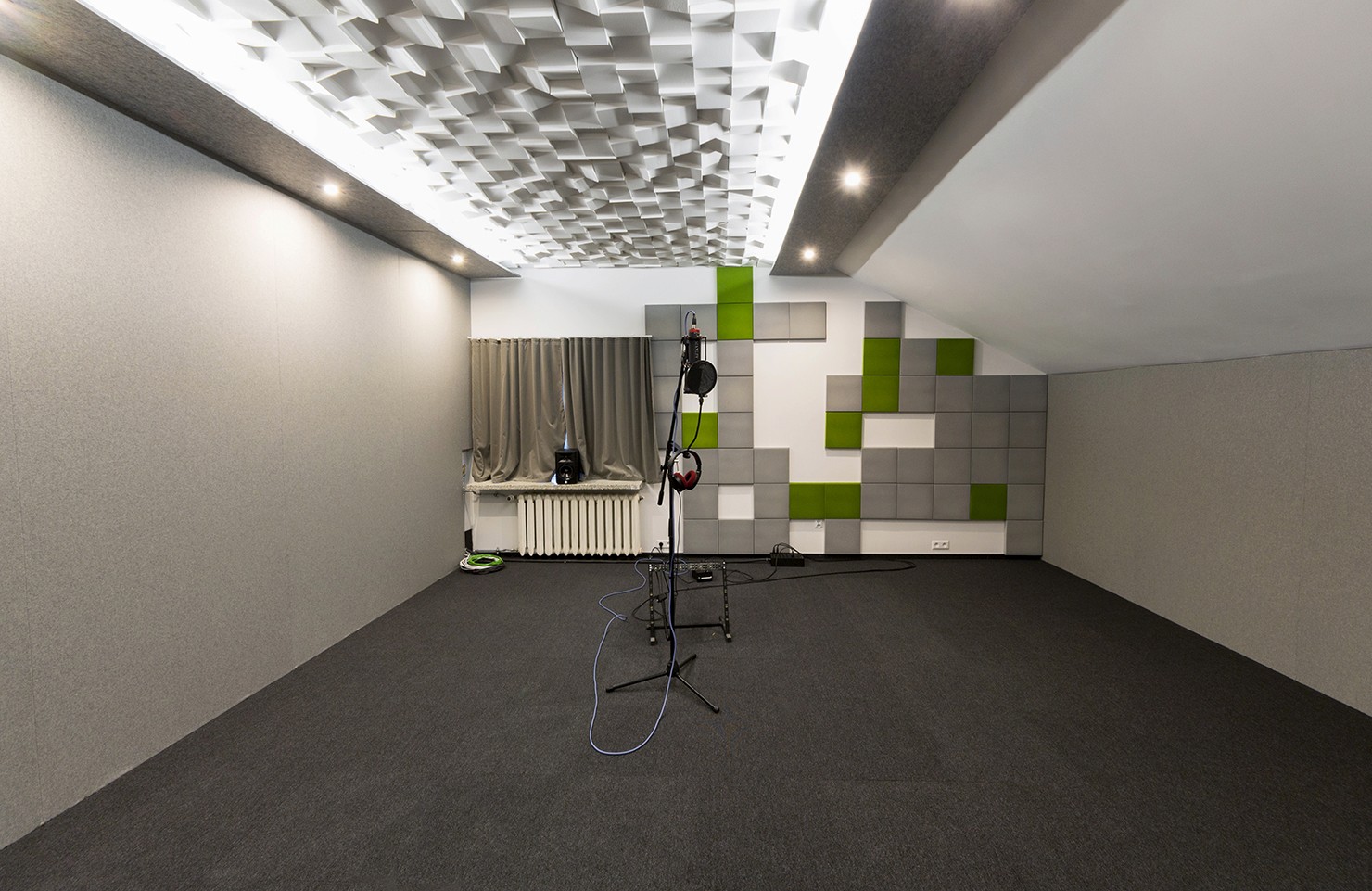 Kompleksowa modernizacja przestrzeni pozwoliła stworzyć funkcjonalne studio nagraniowe, a dzięki połączeniu izolacji konstrukcyjnej, pułapek basowych oraz ustrojów pochłaniających i rozpraszających, pomieszczenia gwarantują stabilne warunki akustyczne zarówno przy nagraniach jak i pracy realizatorskiej.