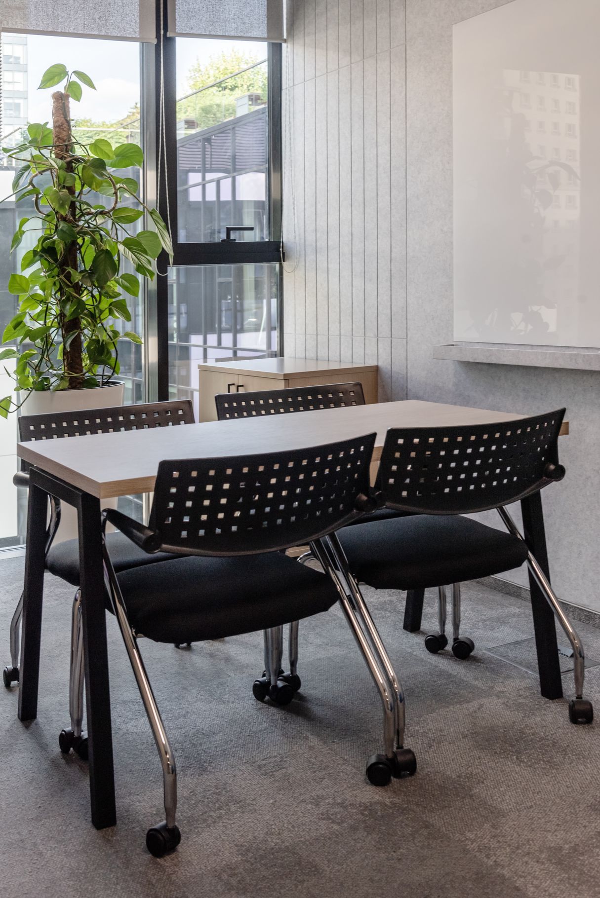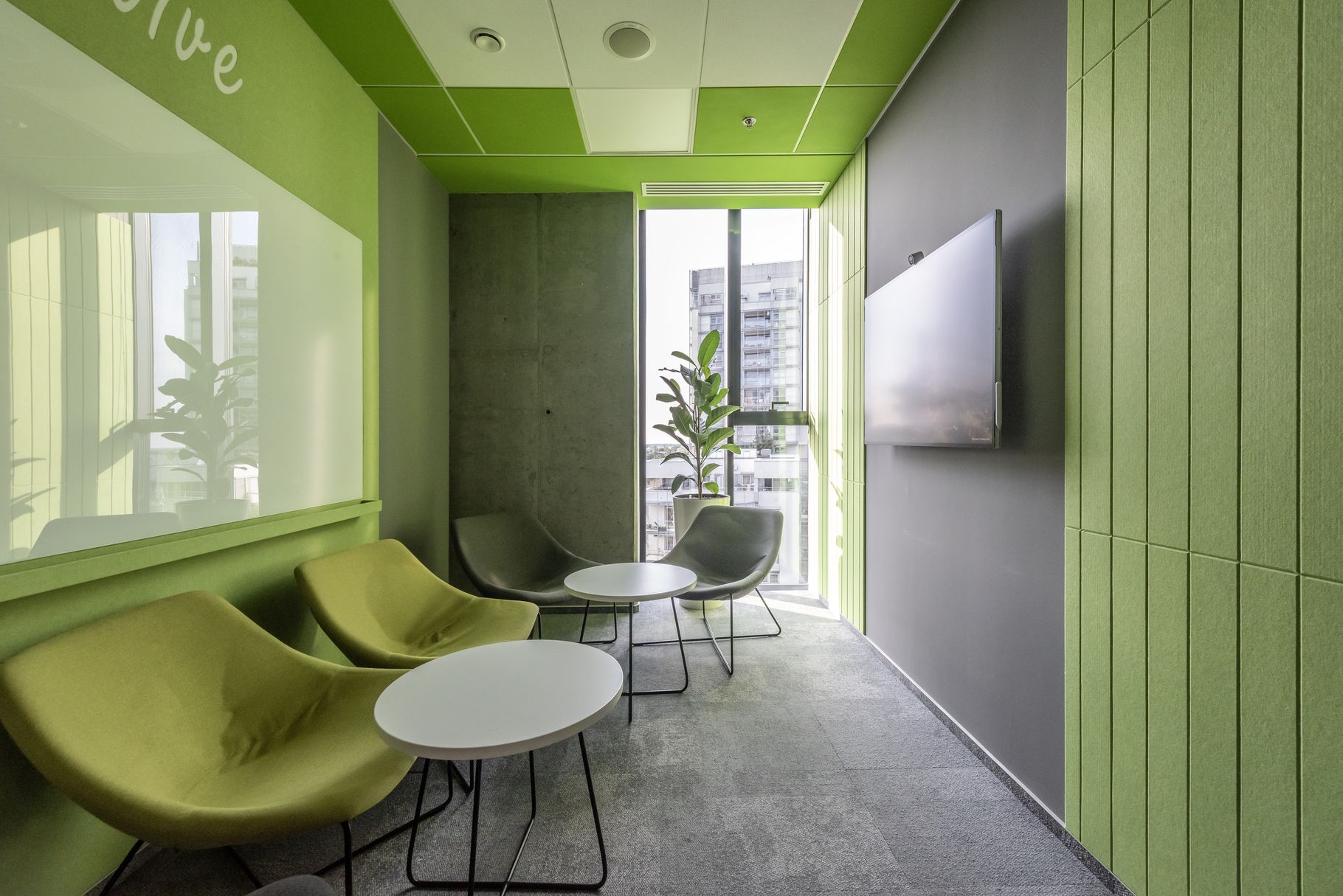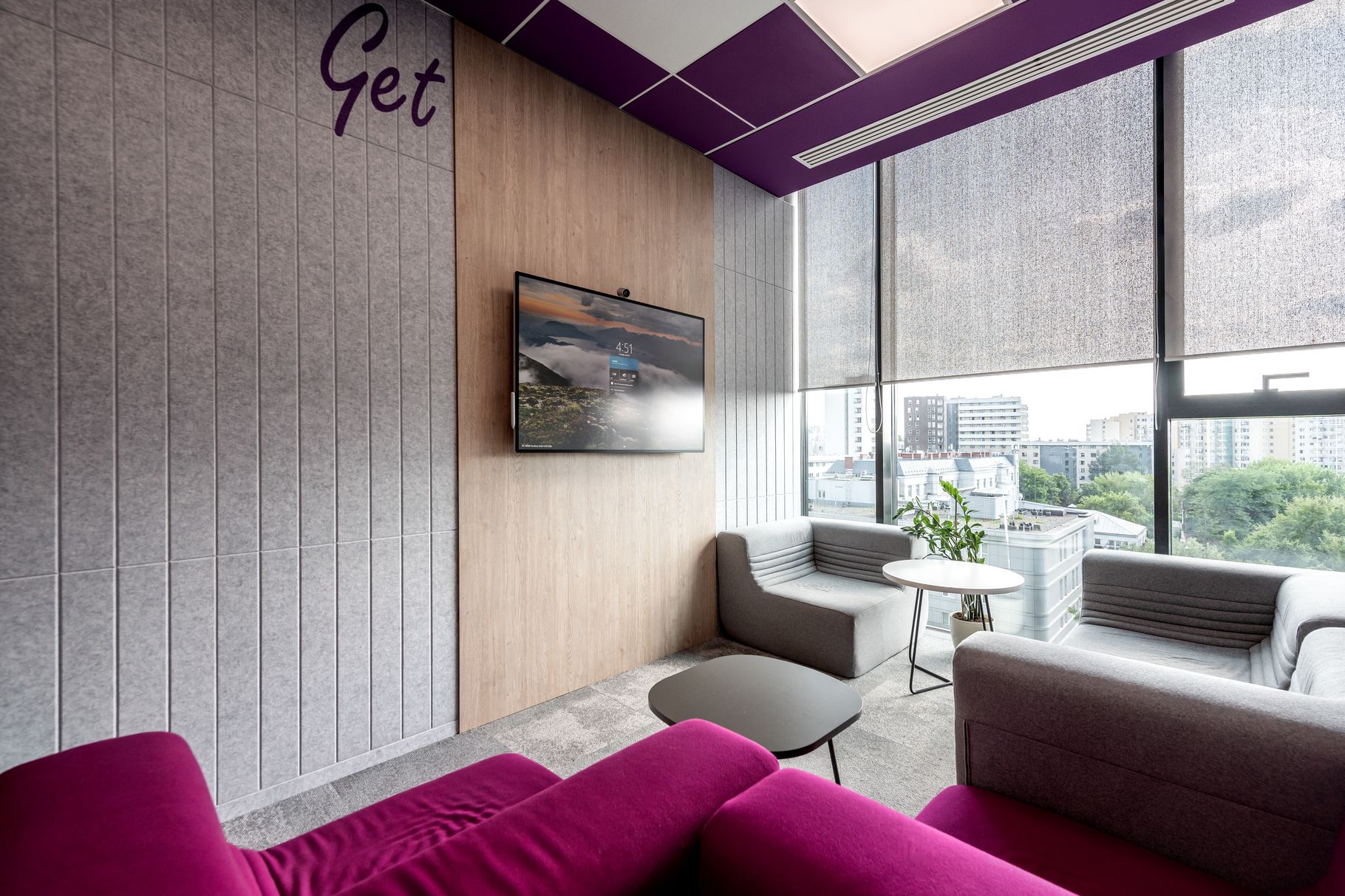 Od gładkich powierzchni po subtelnie frezowane podziały ścian, sale spotkań i strefy lounge zostały wyposażone w rozwiązania EcoWall Basic oraz EcoWall Shape. Całości dopełniają akustyczne kasetony EcoCeiling, które przejmują kontrolę nad odbiciami w skali całego sufitu. To szczególnie istotne w niewielkich, intensywnie użytkowanych pomieszczeniach. Nasze panele, skutecznie redukują pogłos i poprawiają zrozumiałość mowy.