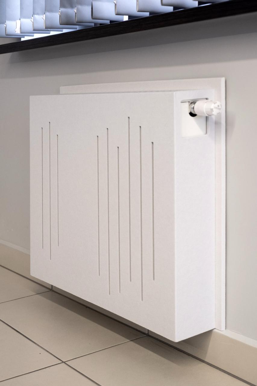 Podobną rolę pełni obudowa grzejnika. Twarda, odbijająca powierzchnia została "ubrana" w materiał dźwiękochłonny, który ogranicza lokalne odbicia i nie zaburza pracy całego systemu. Dzięki temu techniczne elementy infrastruktury przestają być problemem i stają się częścią przemyślanej całości.