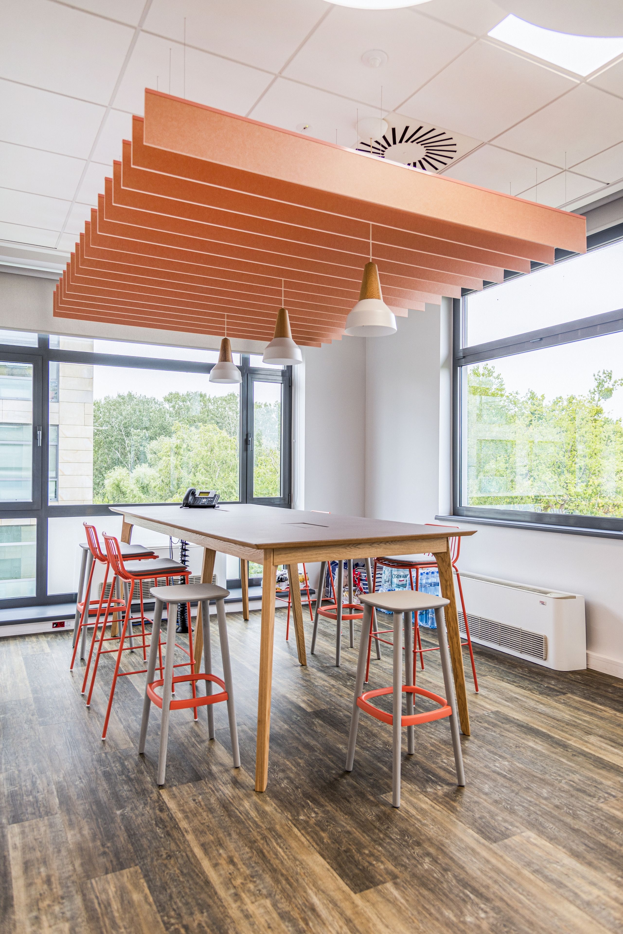 Jakość pracy zaczyna się od komfortu, zarówno wizualnego, jak i akustycznego. Skupienie i precyzja wymagają dobrze uporządkowanego środowiska. W efekcie dzięki akustyce udało Nam się uzyskać komfortowe i jednocześnie pełne życia miejsce.